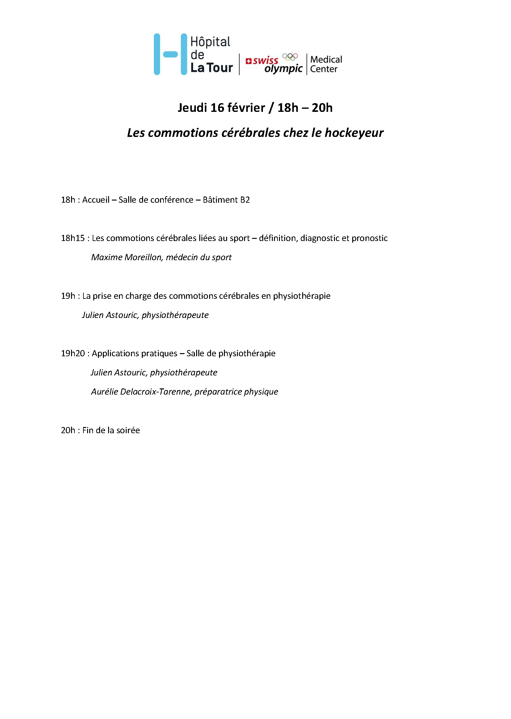 Le CP Meyrin, en partenariat avec l’Hôpital de la Tour, organise une soirée sur le thème des commotions cérébrales.