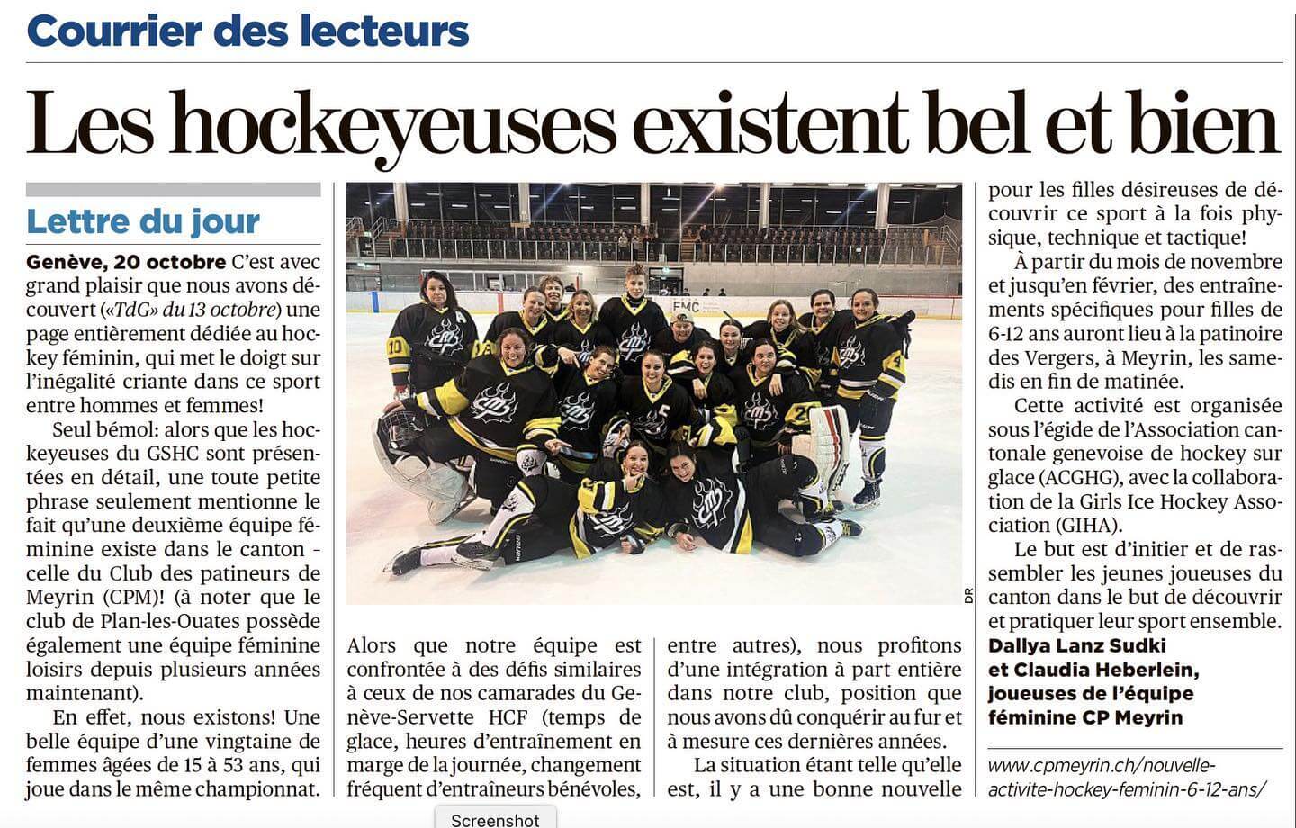 Finalement, dans un autre registre, sous la plume Dally Lanz-Sudki et Claudia Heberlein, elles s’illustrent dans les colonnes de La Tribune de Genève du mardi 26 octobre. Bravo à elles !